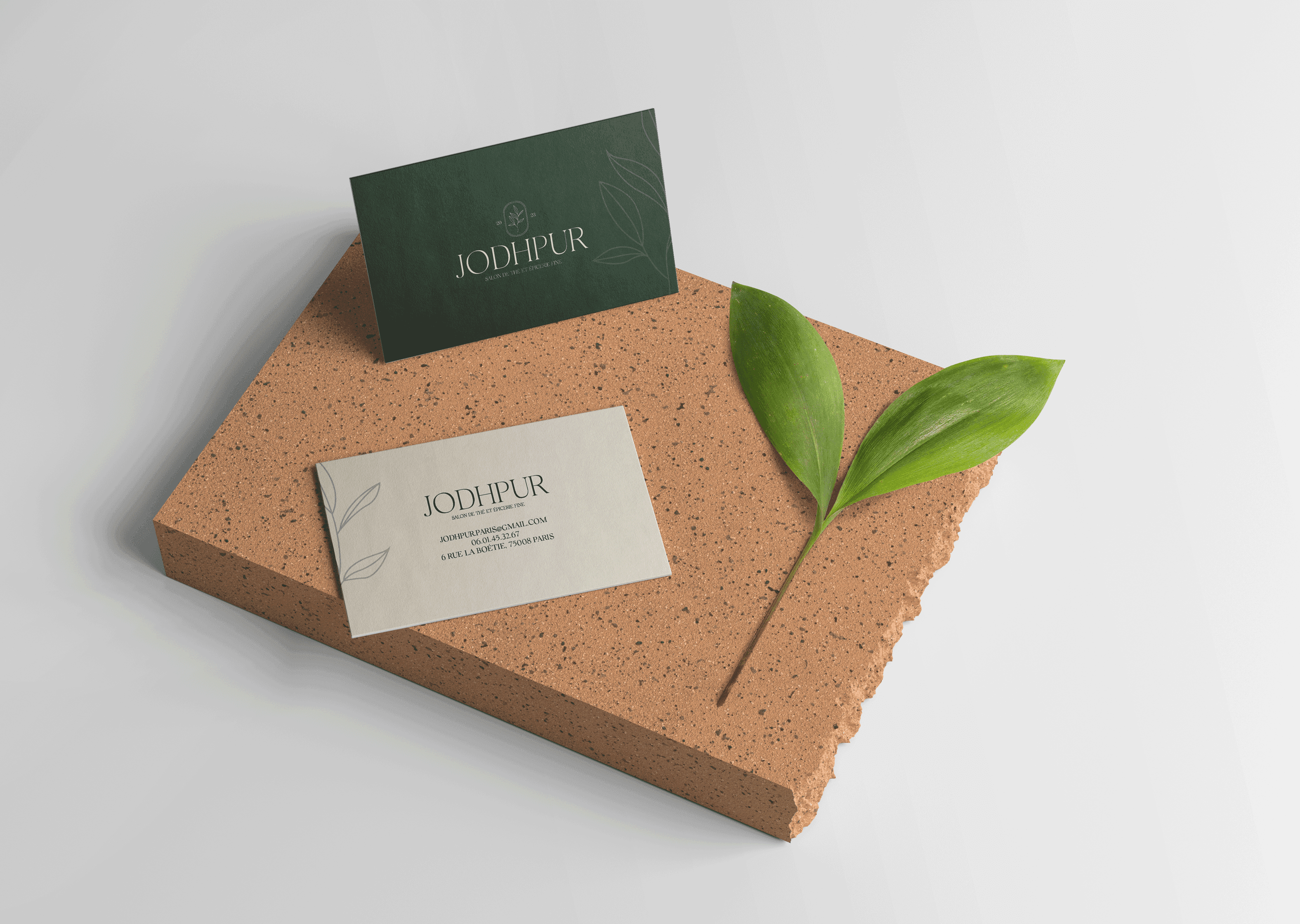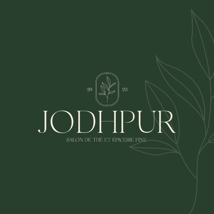 Projet scolaire dans lequel nous devions réaliser l'identité visuelle de Jodhpur, une boutique de thé et d'épicerie fine. Visant principalement les femmes actives de 30 à 40 ans, le client voulait quelque chose de sobre et élégant. J'ai alors réalisé un logo simple au trait représentant une feuille de thé. Elle servira à illustrer les packagings ainsi que d'autres éléments décoratifs. Les couleurs : le vert pour rappeler les plantes et le côté naturel, et le beige pour la douceur et la chaleur. Ces deux couleurs, créant un doux contraste, s'accordent parfaitement avec ce logo sobre.